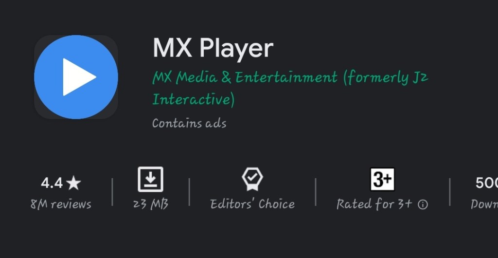 Link: https://play.google.com/store/apps/details?id=com.mxtech.videoplayer.ad