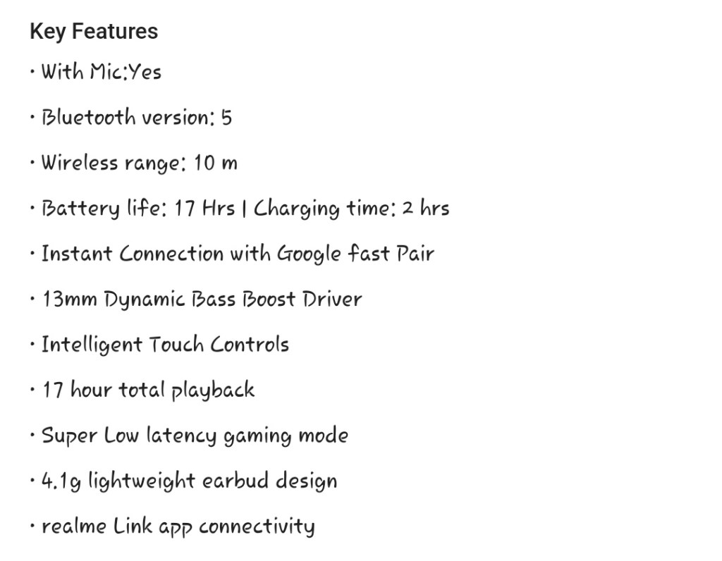 It is the lighter version of the Realme Buds Air. It has the same design as of its predecessor. It has all the necessary and basic features as the Buds Air. It can be a better option if you can drop the feature of wireless charging and you get it at 3k.
