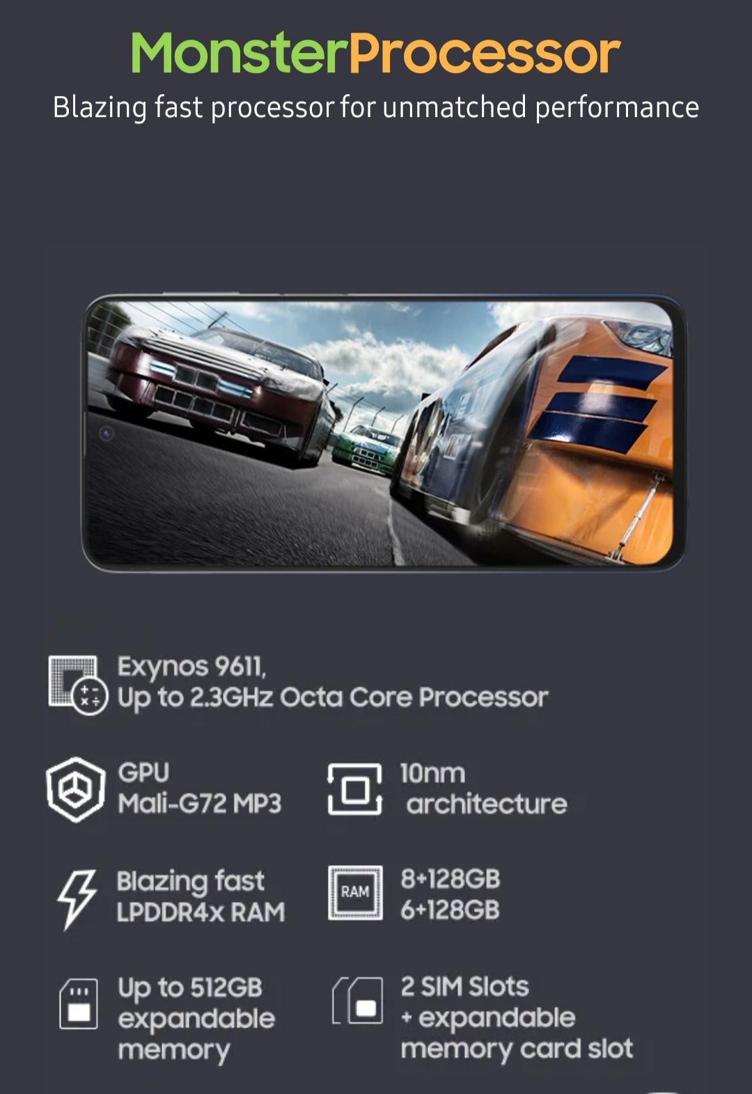 The device disappoints in terms of performance. It has the same old Samsung’s Exynos 9611. Its a decent processor for its price, but cannot compete with other smartphones which has better processor’s. The device can handle all basic tasks and give you good gaming experience, but you cant expect extraordinary performance from it.