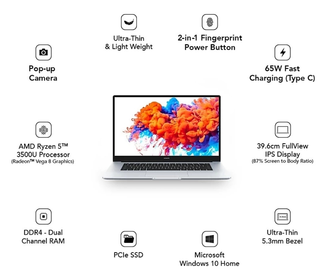 Honor MagicBook 15 Ryzen 5 Quad Core – (8 GB/256 GB SSD/Windows 10 Home) Boh-WAQ9HNR Thin and Light Laptop