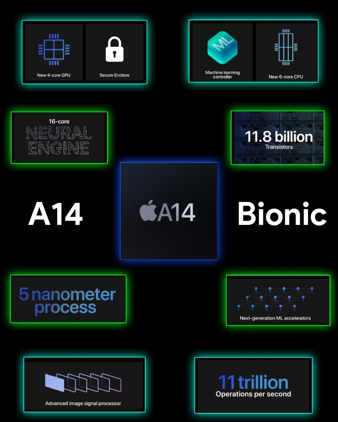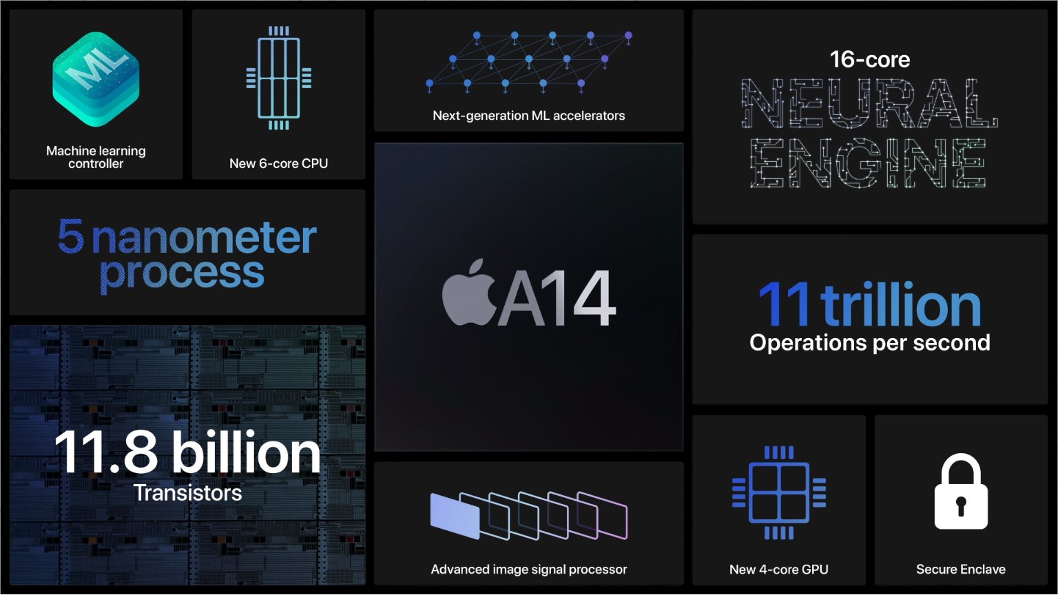 Apple’s A14 bionic chipset is built on a 5 nanometre process, which makes it the first processor with 5nm. It makes it more efficient, so hope the new iphones have better battery life than before.